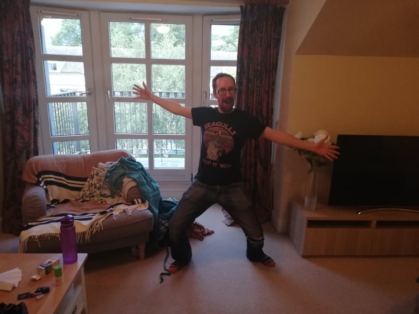 As the second day came to a close the car pulled up in Edinburgh and Zoe and Sammi were reunited with the rest of the clan at Hilary and Stephen’s temporary flat. The original plan was to stop here overnight and move into our house the next day but it was clear now we might need to make this our base of operations for a longer period.
